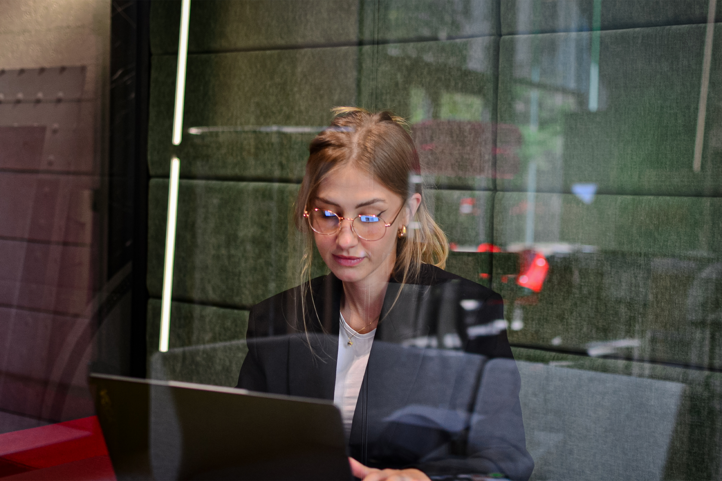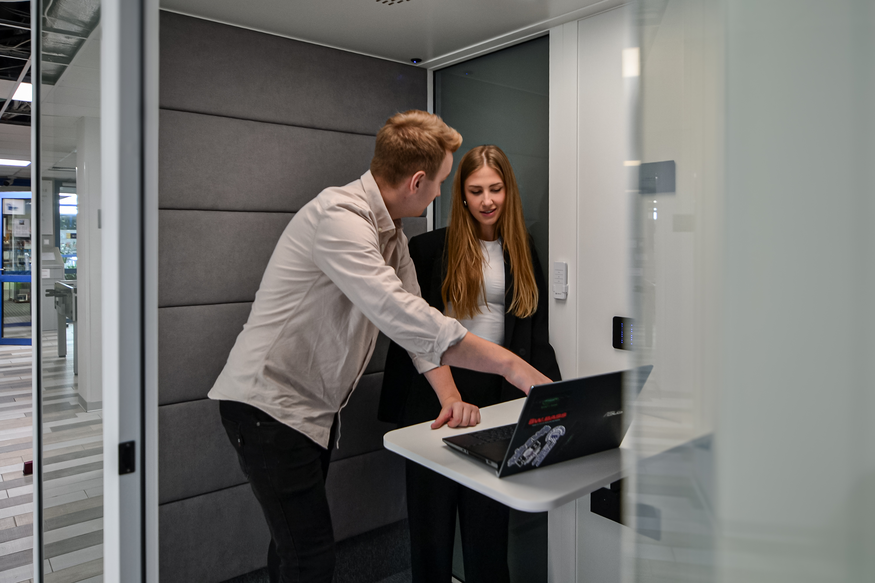 Ważnym etapem były testy akustyczne, analizowaliśmy rozchodzenie się dźwięku między strefami oraz poziom hałasu generowany przez urządzenia biurowe. Dzięki temu mogliśmy dobrać optymalne lokalizacje budek, a także zaplanować sposób ich użytkowania.