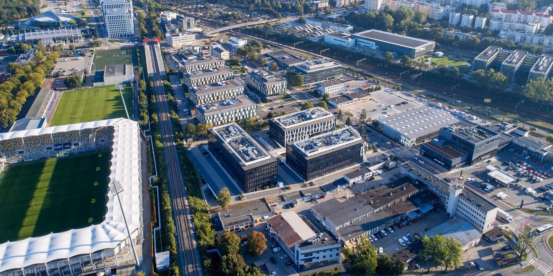 Wspomniane kompleksy zlokalizowane są przy ulicy Łużyckiej, która od lat stanowi biznesowe centrum Gdyni, oferując jedne z najbardziej rozpoznawalnych i najlepiej skomunikowanych adresów w mieście. Kluczowym atutem lokalizacji jest bezpośredni dostęp do stacji Pomorskiej Kolei Metropolitalnej (PKM) i dwóch przystanków Szybkiej Kolei Miejskiej (SKM), a także bliskość głównej arterii komunikacyjnej Trójmiasta. Takie położenie gwarantuje sprawny dojazd do Sopotu i Gdańska, a podróż na międzynarodowe lotnisko samochodem lub koleją zajmuje około 20 minut. Te udogodnienia komunikacyjne sprawiają, że jest to rejon Gdyni cieszący się dużym zainteresowaniem wśród najemców.